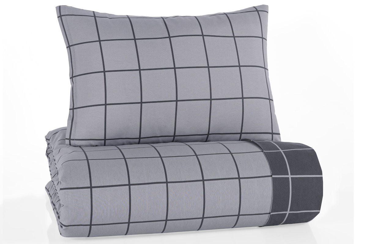 Pościel Tia została wykonana z wysokiej jakości bawełny o delikatnych, miękkich włóknach, przyjemnych w dotyku. Subtelny, kwadratowy motyw w odcieniach szarości to idealne uzupełnienie nowoczesnej sypialni. Materiał świetnie odprowadza wilgoć, praktycznie się nie gniecie i na długo zachowuje swój kształt oraz kolor. Gdy tylko ją założysz nie będziesz chciał/a wychodzić z łóżka. Miękkość bawełny dosłownie Cię otuli, zapewniając idealny odpoczynek.