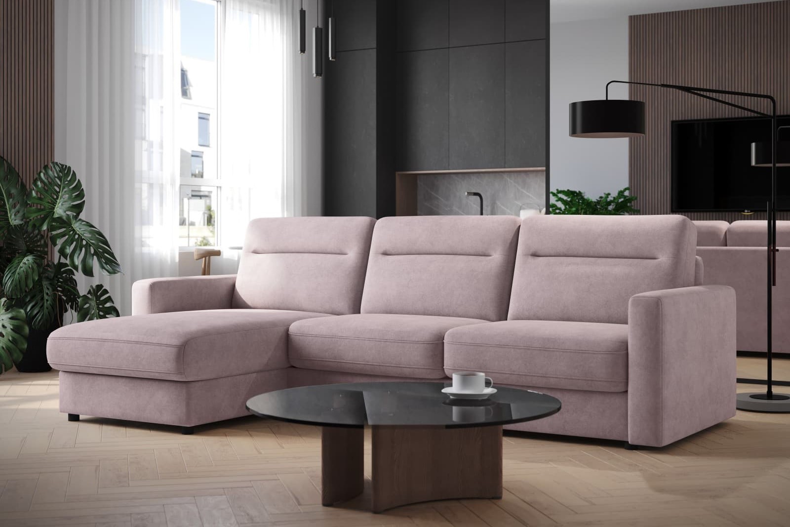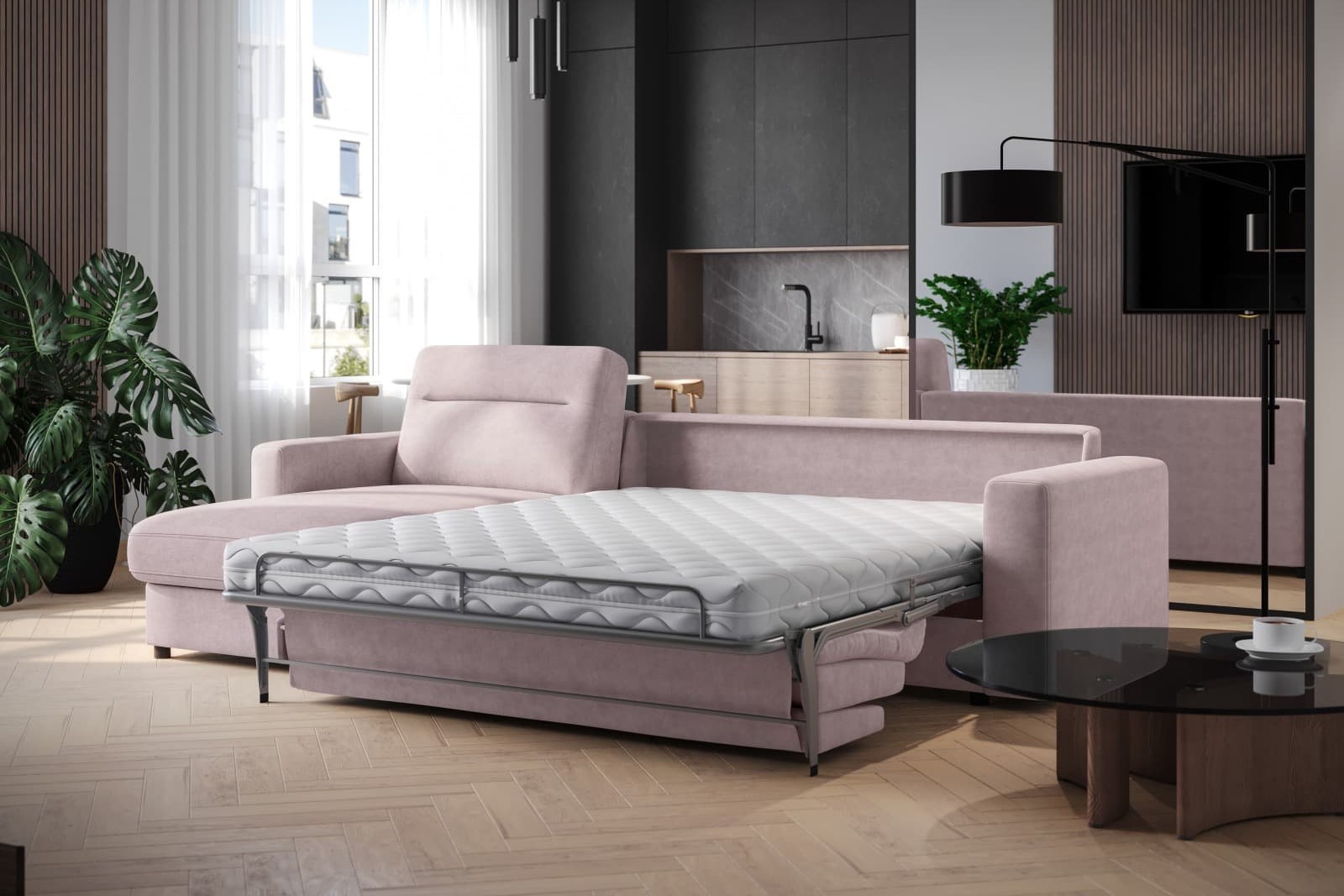Narożna rozkładana sofa do codziennego spania Lugano w ponadczasowym designie zachwyca swoją prostotą i elegancją. Ten model polecamy nie tylko tym, którzy nie mają wystarczająco dużo miejsca w wnętrzu i szukają sofy, którą w kilka chwil można przekształcić w pełnowymiarowe łóżko, ale także do większych gospodarstw domowych, ponieważ doskonale sprawdzi się podczas każdej wizyty.