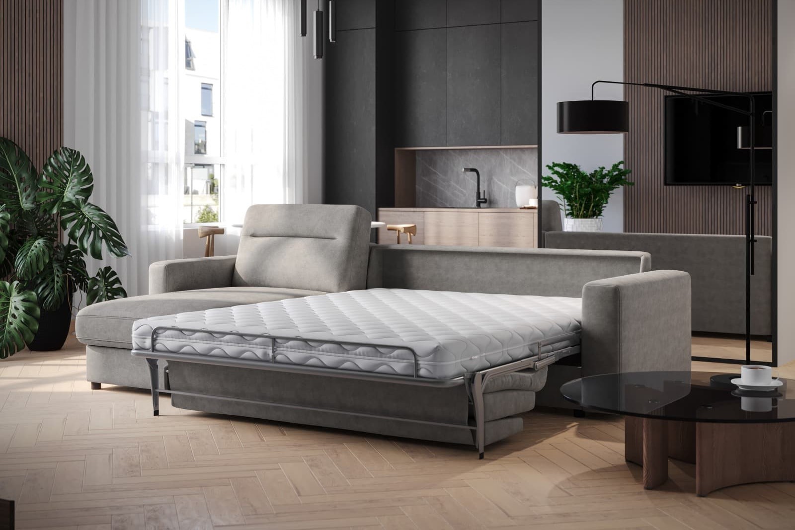 Narożna sofa i pełnowymiarowe łóżko w jednym