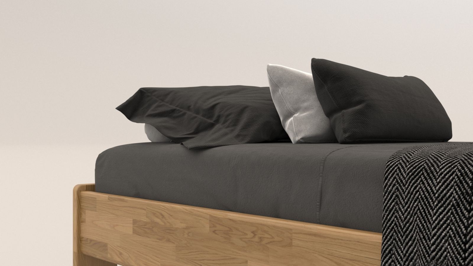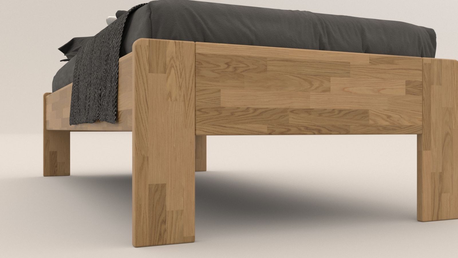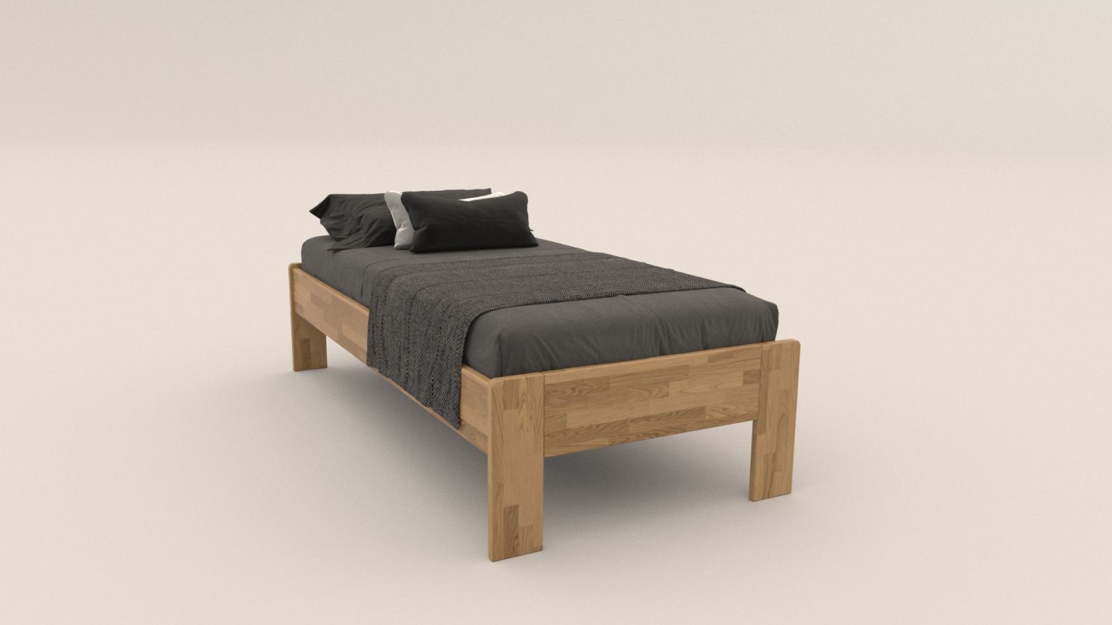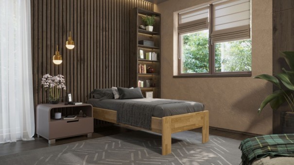 Pojedyncze łóżko z litego drewna Amien, wersja futon, dąb, D1, 90x200 cm
