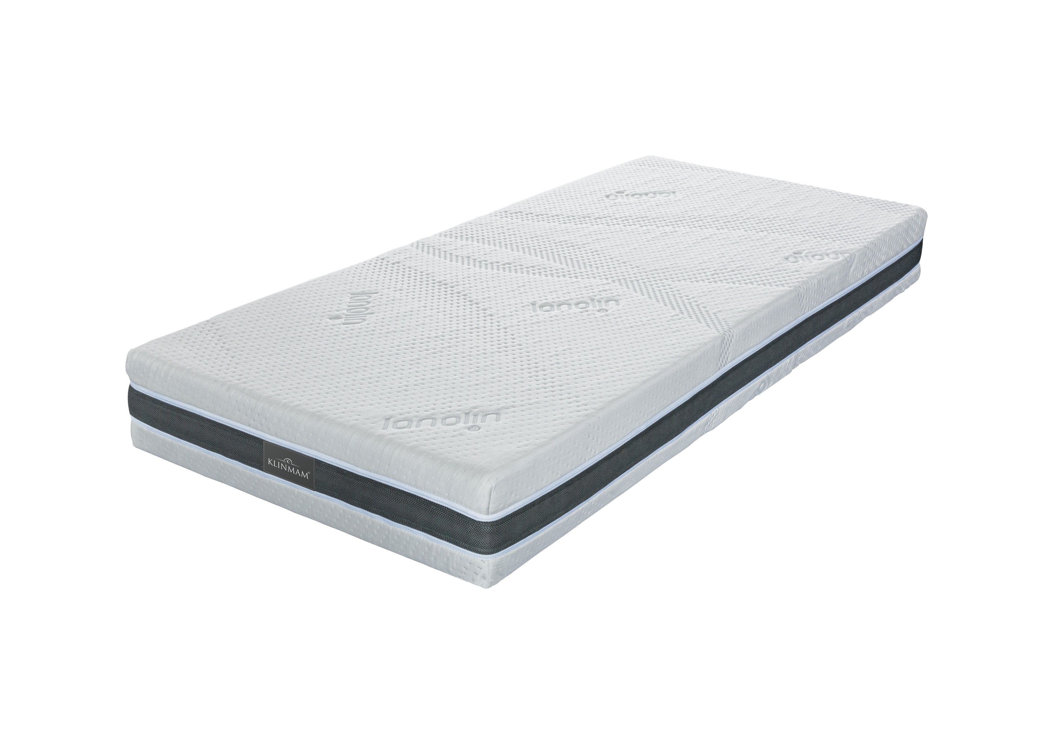 Materac Klinmam Comfort Lanoline apewnia doskonałe podparcie ciała, wysoki komfort oraz wspiera regenerację podczas snu. Wyposażony jest w estetyczny, antyalergiczny i antybakteryjny pokrowiec, który można łatwo zdjąć i wyprać w temperaturze 60°C. Górna warstwa materaca z termoelastycznej piany Memoform idealnie dopasowuje się do kształtu ciała, zapobiegając powstawaniu odleżyn. Środkowa warstwa z elastycznej piany Blackfoam gwarantuje optymalny komfort, a trzecia warstwa z piany wysokoelastycznej zapewnia precyzyjne, ortopedyczne wsparcie kręgosłupa.