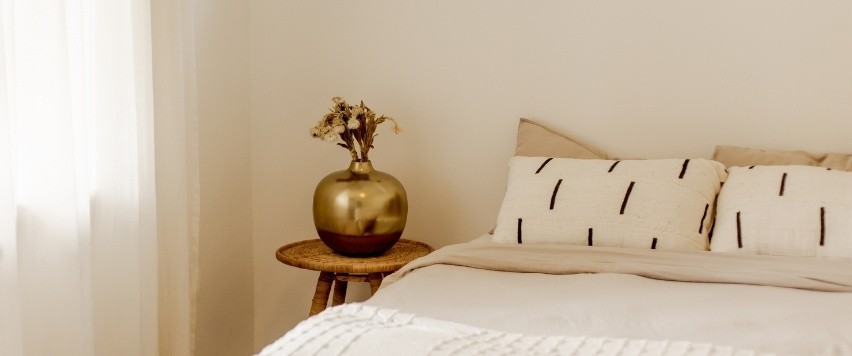 Wybieraj raczej stonowane barwy. Urządzaj sypialnię w odcieniach brązu, ochry, żółci, zieleni lub błękitu.