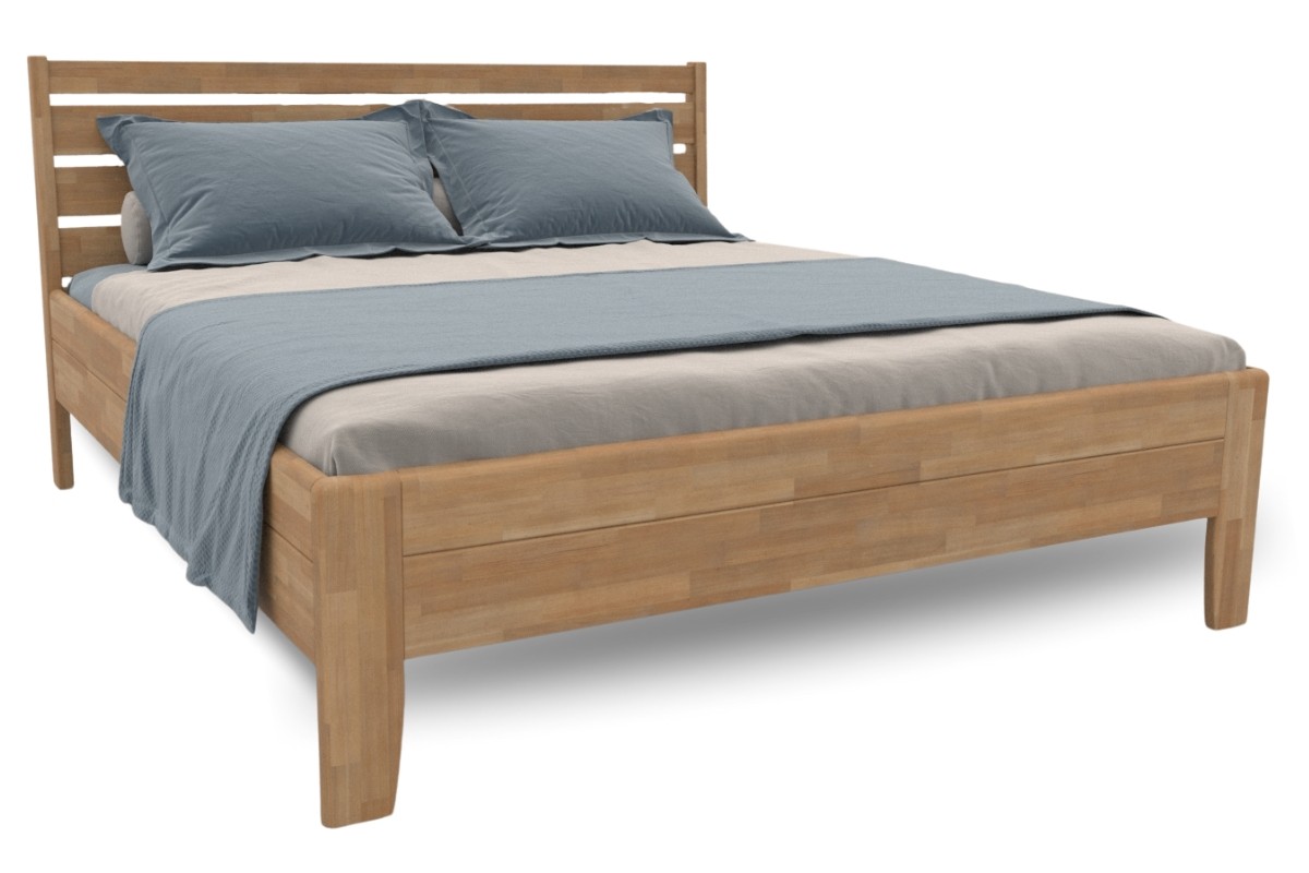 Ponadczasowe łóżko Lugo wniesie do Twojej sypialni odrobinę natury dzięki swojemu lakierowanemu wykończeniu w naturalnym połysku. Dominujące kanciaste wezgłowie w połączeniu z delikatnie zaokrągloną ramą nie tylko świetnie wygląda, ale także zapewnia maksymalne bezpieczeństwo i wygodę. Łóżko jest produkowane w Polsce z naciskiem na precyzyjny wybór najwyższej jakości materiałów, takich jak gładki buk, który charakteryzuje się wyjątkową wytrzymałością i twardością.